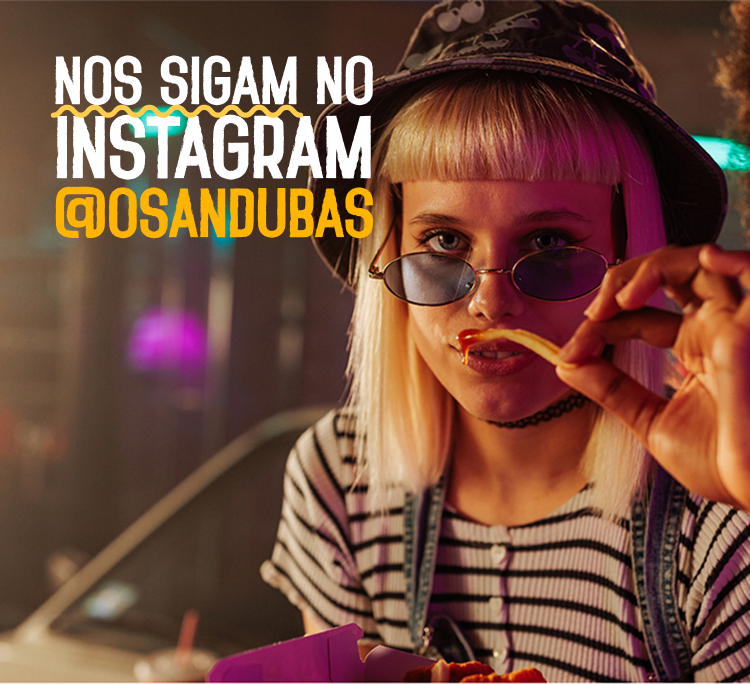 Pão, hambúrguer, filé de frango, lombo suíno, filé bovino, calabresa, salsicha, bacon, ovo, muçarela, presunto, catupiry, cheddar, cebola, abacaxi, alface, tomate, milho e batata palha.